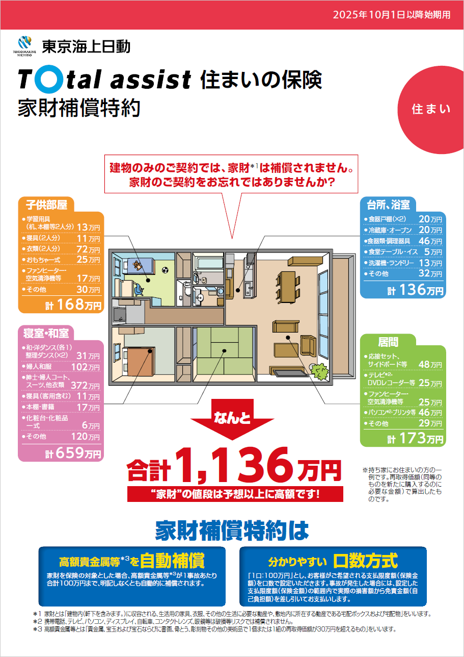 2年以上の長期契約や不動産会社の指定内容で加入したままになっている・・・など、現在加入されている火災保険の補償内容をきちんとご存知ですか? 火災保険は、落雷、風災、雪災、水災などの自然災害や日常のアクシデントにも対応できます。もしもの場合にそなえ、火災保険の内容を一度見直されてはいかがでしょう?【随時更新】